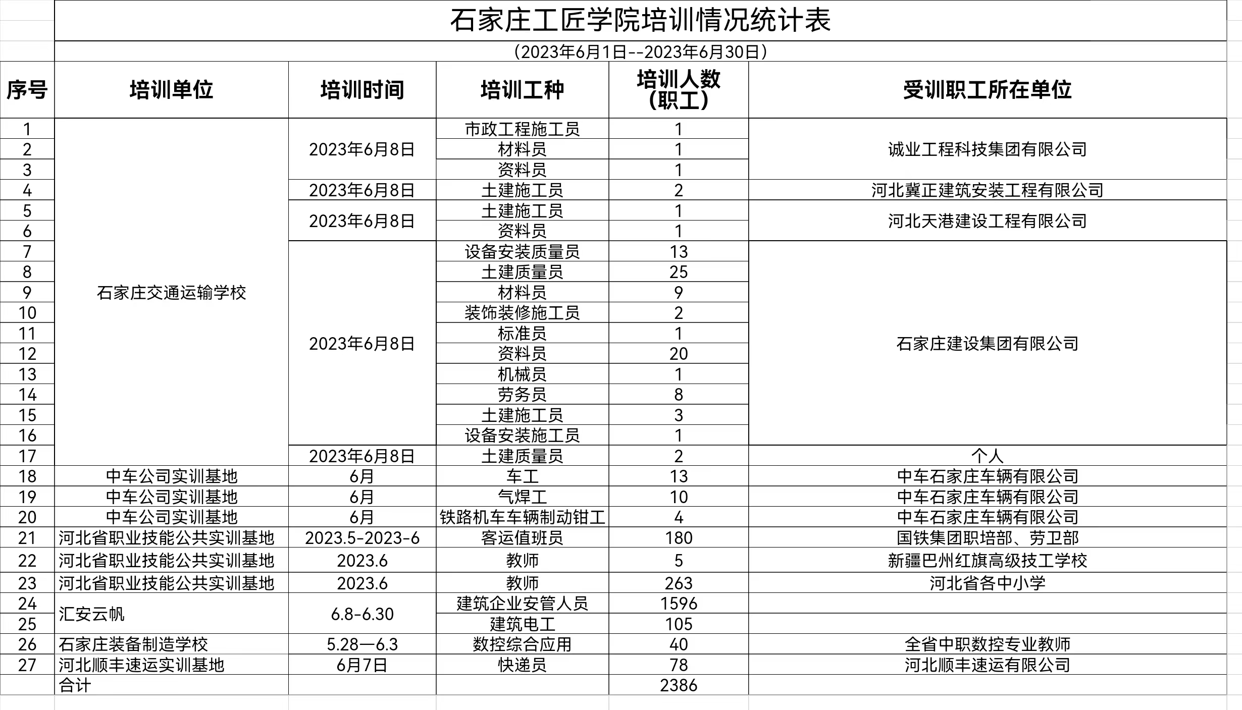 石家莊工匠學(xué)院培訓(xùn)情況統(tǒng)計表