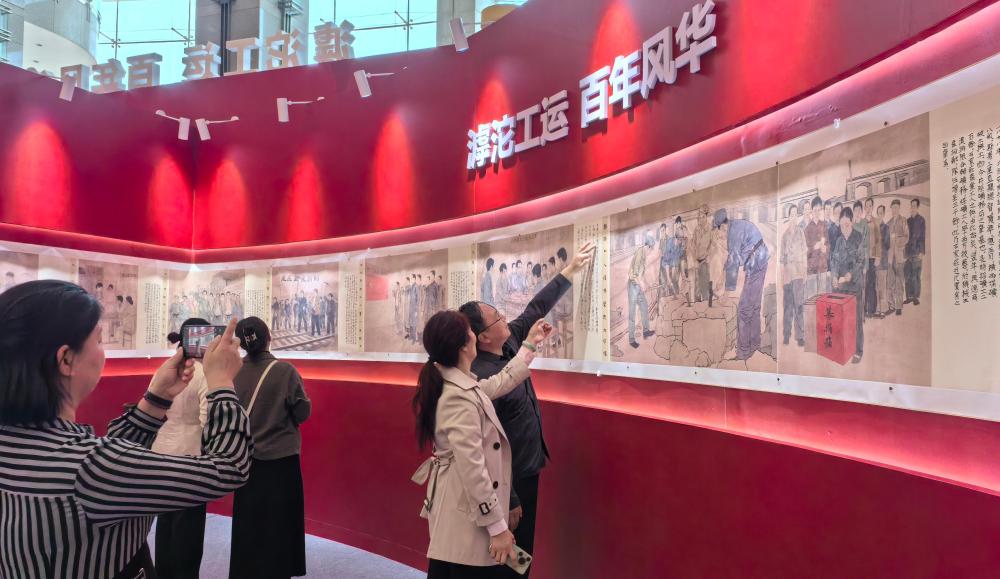 本次展覽由石家莊市總工會傾力組織,歷時半年精心籌備,薈集石家莊市工運史百米長卷、石家莊工運賦、書法攝影、工藝創(chuàng)作、文化文創(chuàng)及創(chuàng)新成果等豐富展品。全市職工以丹青繪就時代畫卷,以鏡頭定格奮斗風采,以匠心雕琢工匠精神,以創(chuàng)新引領未來征程,以智慧和情懷傾情獻禮百年工運。