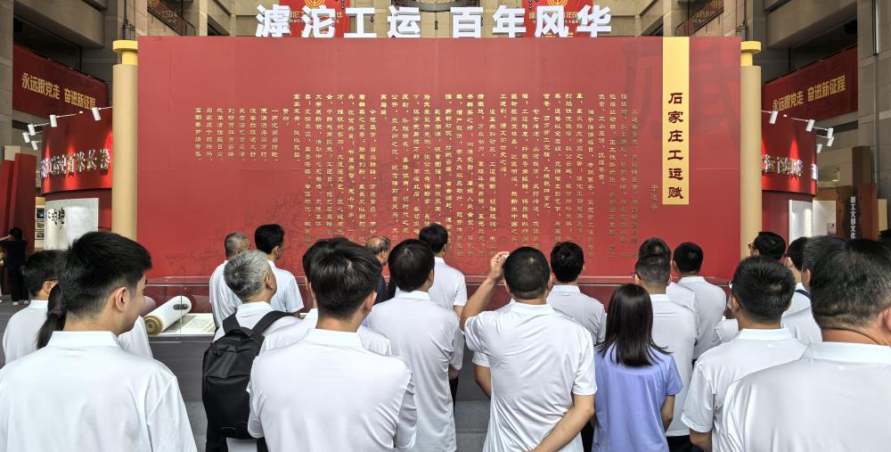 百米長卷以《石家莊工運賦》收束,該篇賦文由知名作家于連亭執(zhí)筆,以遒勁文風熔鑄而成。精煉抒寫出石家莊工人階級櫛風沐雨的奮斗史詩,深情鐫刻下滹沱河畔薪火相傳的工運印記。這既是一部滿懷赤忱的工運歷史頌歌,更是一曲催人奮進的時代號角,激勵著新時代工人階級和工會干部賡續(xù)紅色血脈,續(xù)寫工運事業(yè)嶄新篇章。