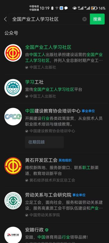 1、打開微信公眾號,搜索“全國產(chǎn)業(yè)工人學(xué)習(xí)社區(qū)”。